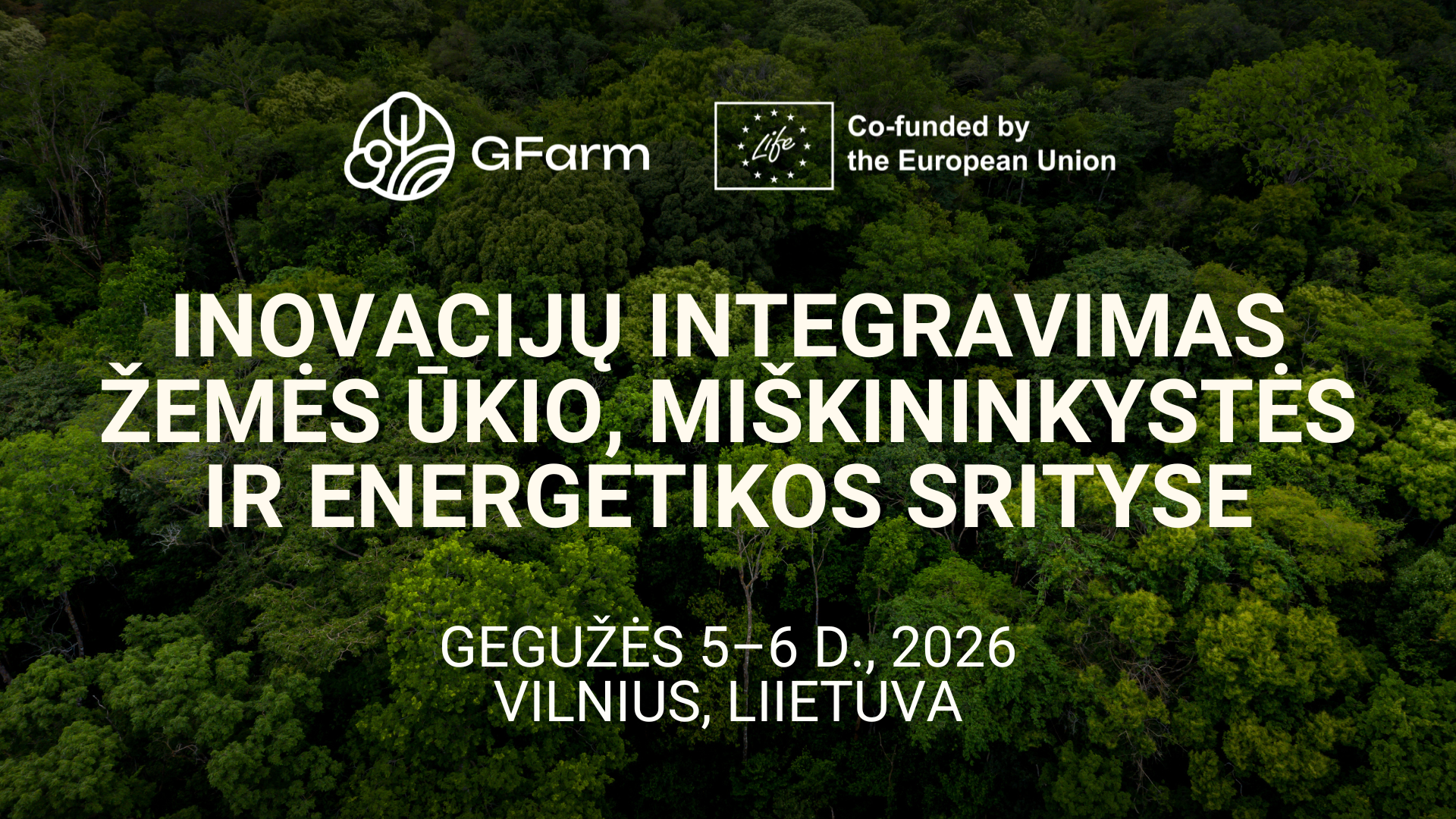 Gegužės 5–6 dienomis Vilniuje vyks tarptautinė konferencija, skirta žemės ūkio, miškininkystės ir energetikos sektorių sujungimui siekiant klimato neutralumo. Renginį organizuoja Agrifood Lithuania kartu su GFarm projekto partneriais.